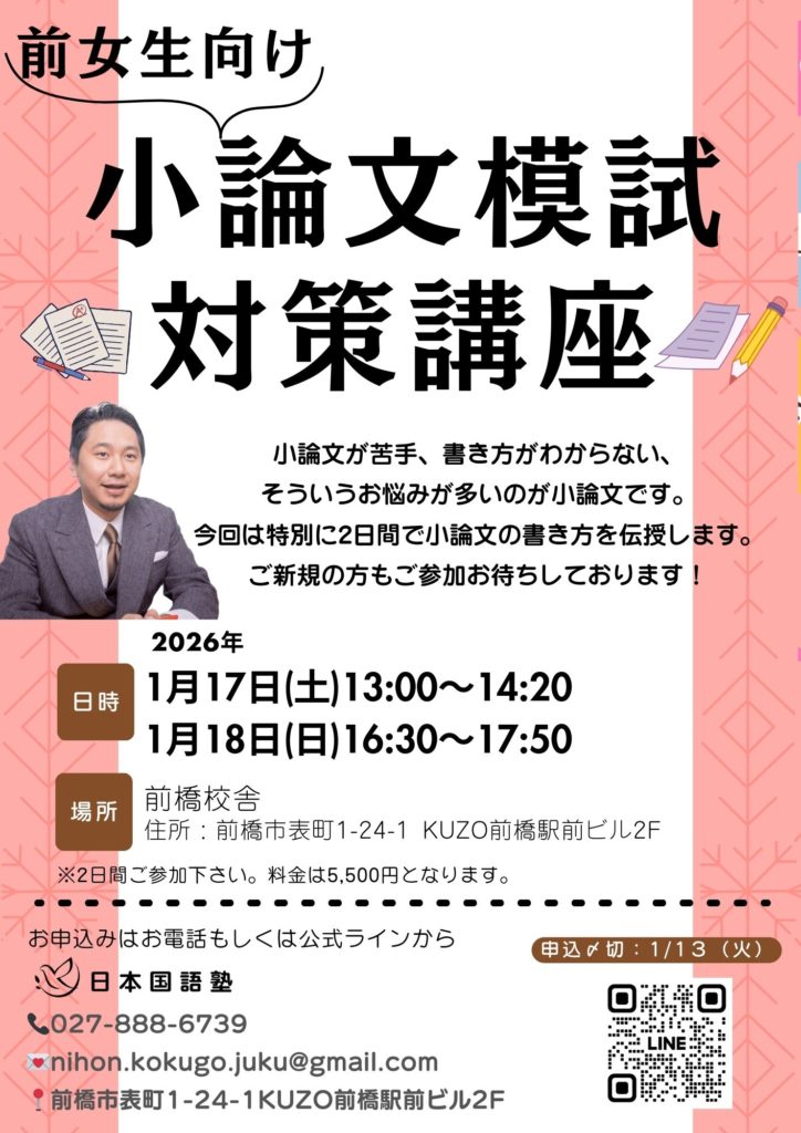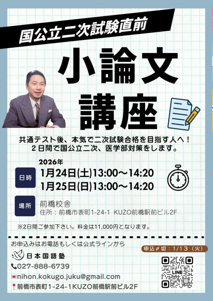 1月に小論文講座を2つ開催します。対象者はぜひご参加ください。